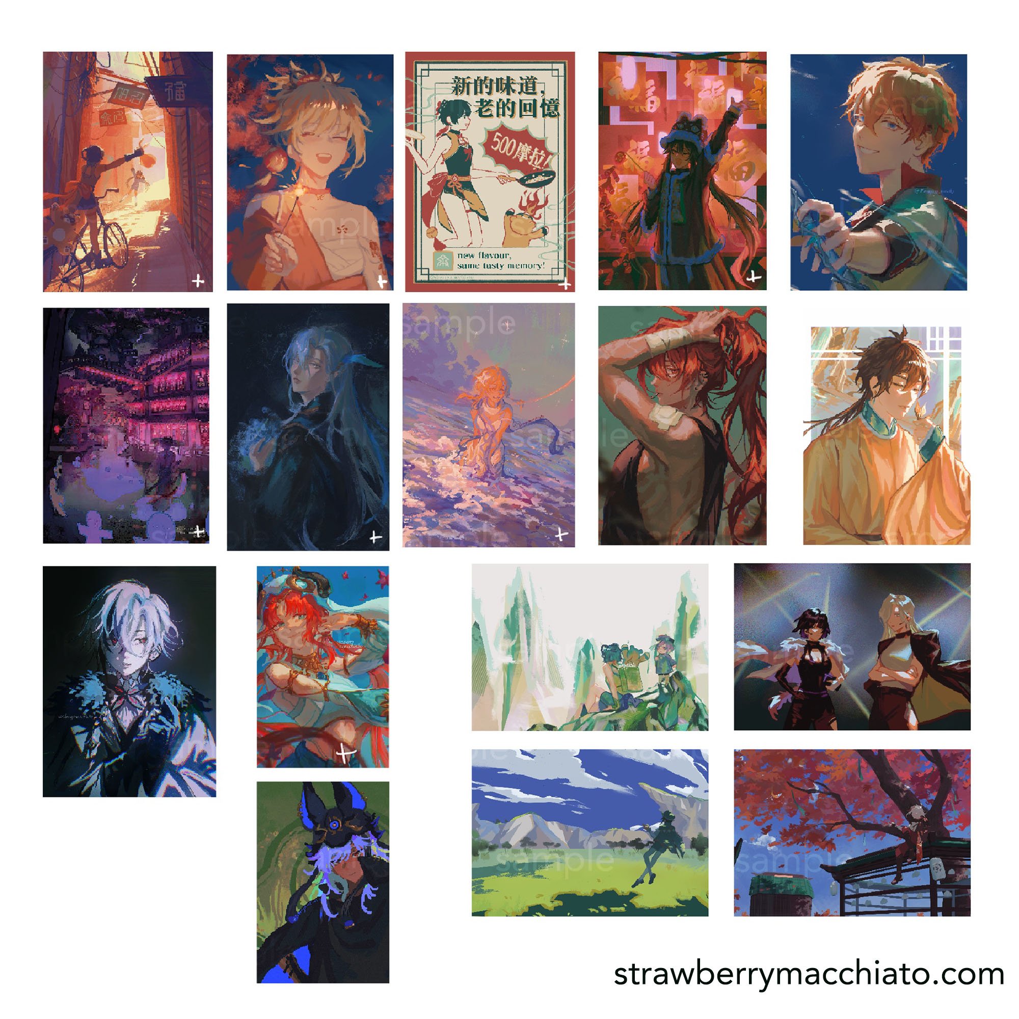 Poster Size (11" x 17"): Xianxia AU Wanderer, Lumine, Hutao, Xiangling's Delivery Service, Xiangling Retro Poster, Yoimiya, Neuvillette, Nilou (everything with a plus sign)