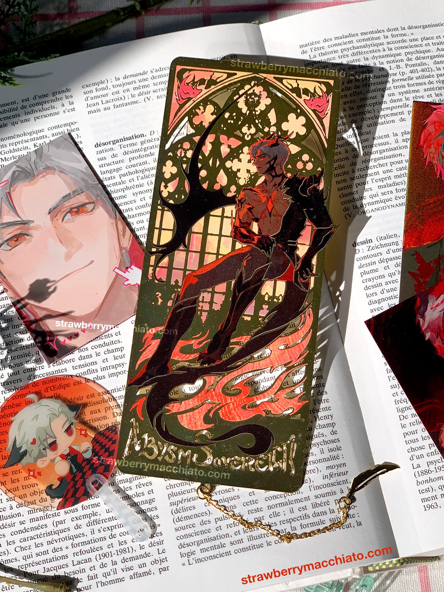Printed on shiny golden metal, this 6.5" inch bookmark comes with a dangle charm and also a backing card, making it the perfect companion for both your literary adventures and itabag furnishing.